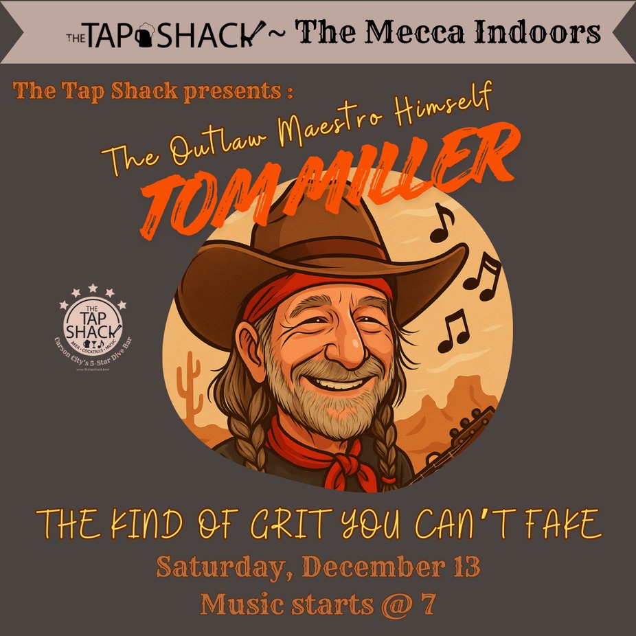 Saddle up for a night of pure outlaw soul as Tom Miller returns to The Tap Shack, Carson City’s undisputed Music Mecca and proud 5-Star Dive Bar. With a voice weathered by truth and a playing style carved straight from the Americana deserts, Tom brings the kind of grit you just can’t fake.