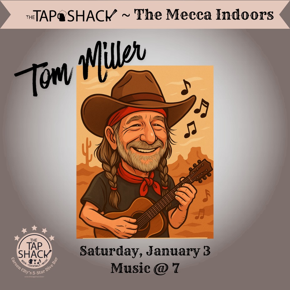 Saddle up for an unforgettable Saturday night with Tom Miller, The Tap Shack’s own outlaw-country king! His uncanny Willie Nelson vibe, gritty vocals, and soulful guitar playing set the tone for a night of authentic, feel-good music. Kick off your boots and cozy up indoors at The Mecca for an evening that blends heart, humor, and honky-tonk.