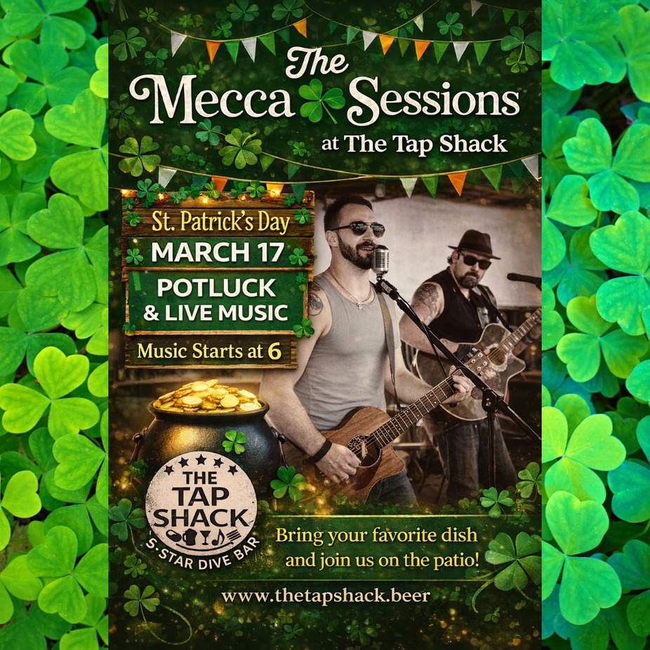Celebrate St. Patrick’s Day the Tap Shack way — music, friends, and a potluck spread that could feed a leprechaun army.