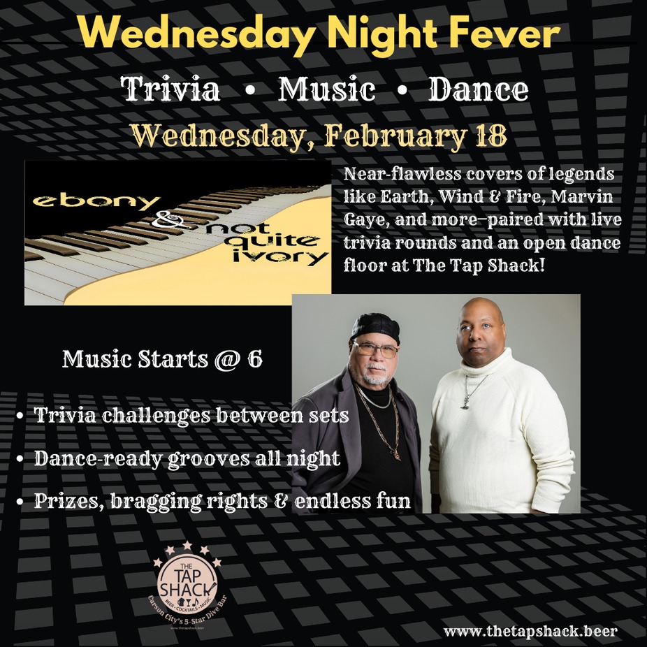 The snow might be piling up outside, but inside The Tap Shack, it’s all rhythm and rivalry. Ebony & Not Quite Ivory deliver near-flawless covers of legends like Earth, Wind & Fire and Marvin Gaye while you battle it out in live trivia between sets.