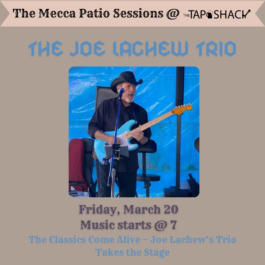 🎸 The Joe Lachew Trio hits the Mecca Patio bringing smooth grooves, timeless hits, and that effortless live sound that just feels right.